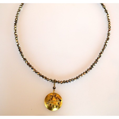 • Antique Gold Solid Brass Bee Necklace - European Crystals