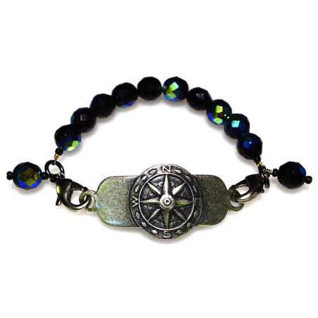 World Traveler Antique Silver Brass Compass Interchangeable Rockband